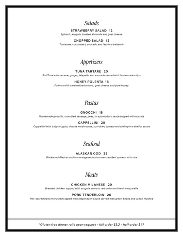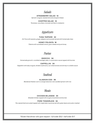 Spring Dinner Menu